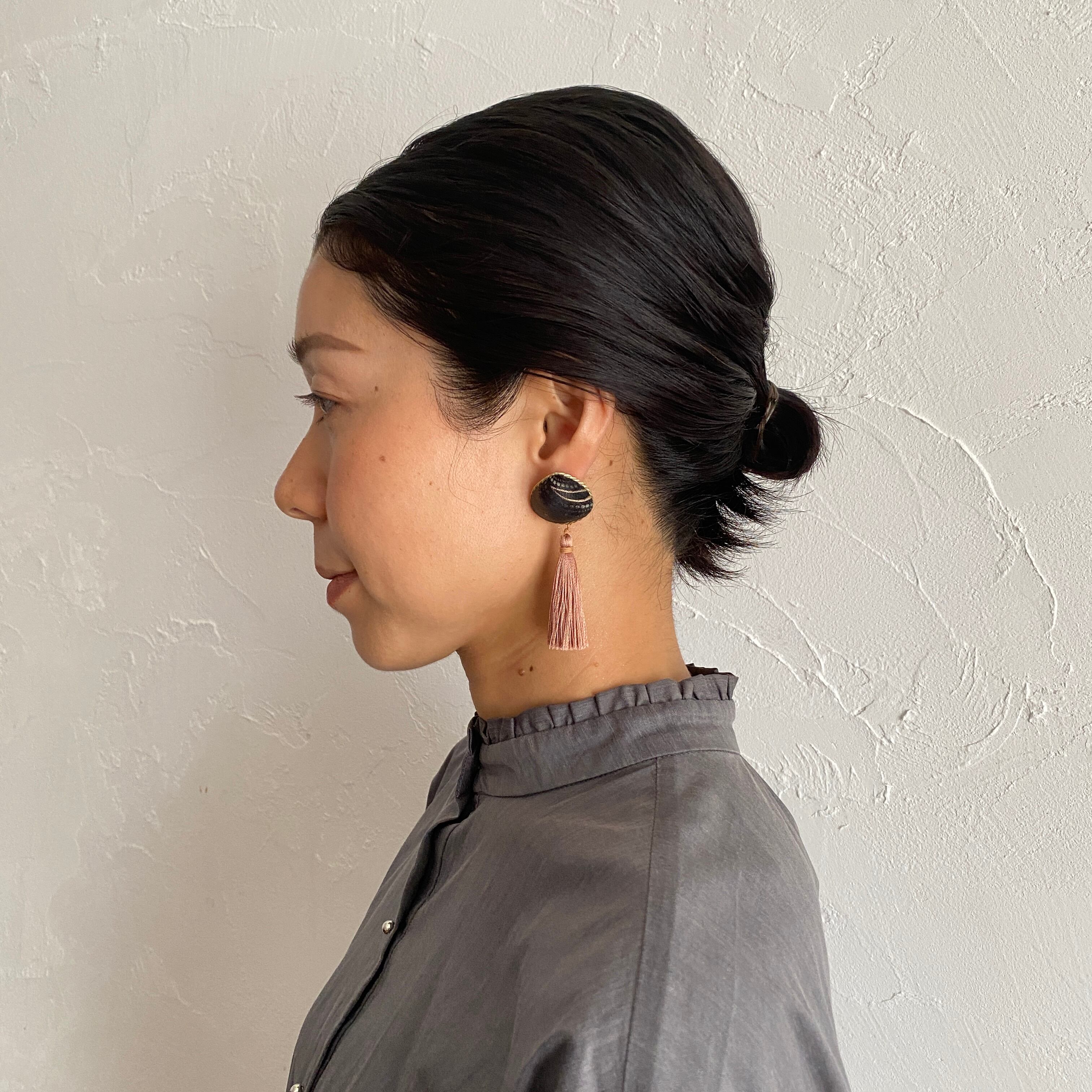 光沢の美しいレーヨン糸のタッセルを合わせ、アシンメトリーに仕上げました。
