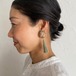 "宍道湖産しじみの貝殻を、華やかな刺繍が特徴的なインドリボンや布で包んだイヤリング。