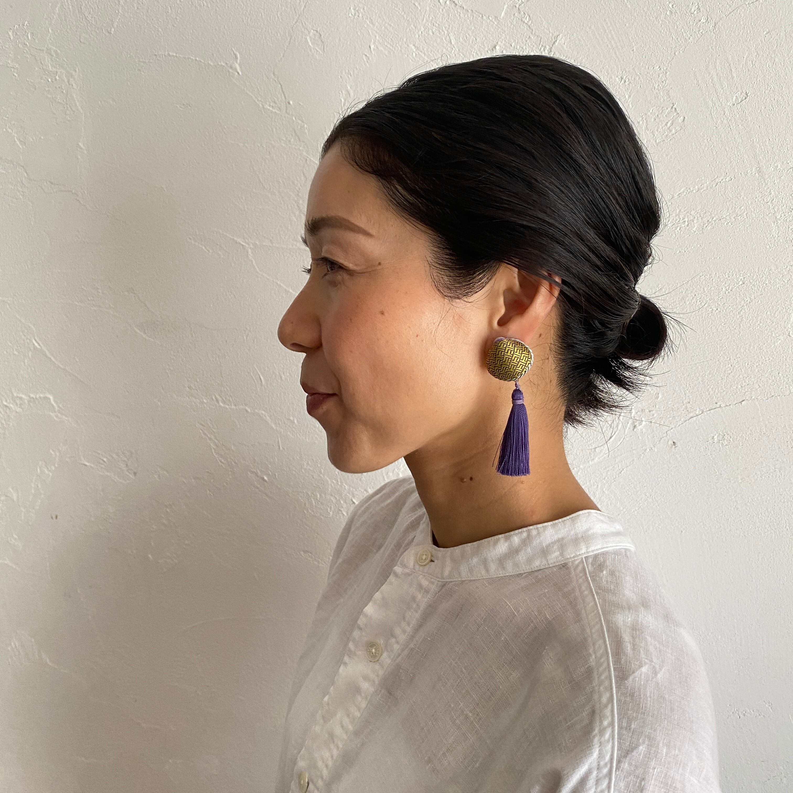 光沢の美しいレーヨン糸のタッセルを合わせ、アシンメトリーに仕上げました。