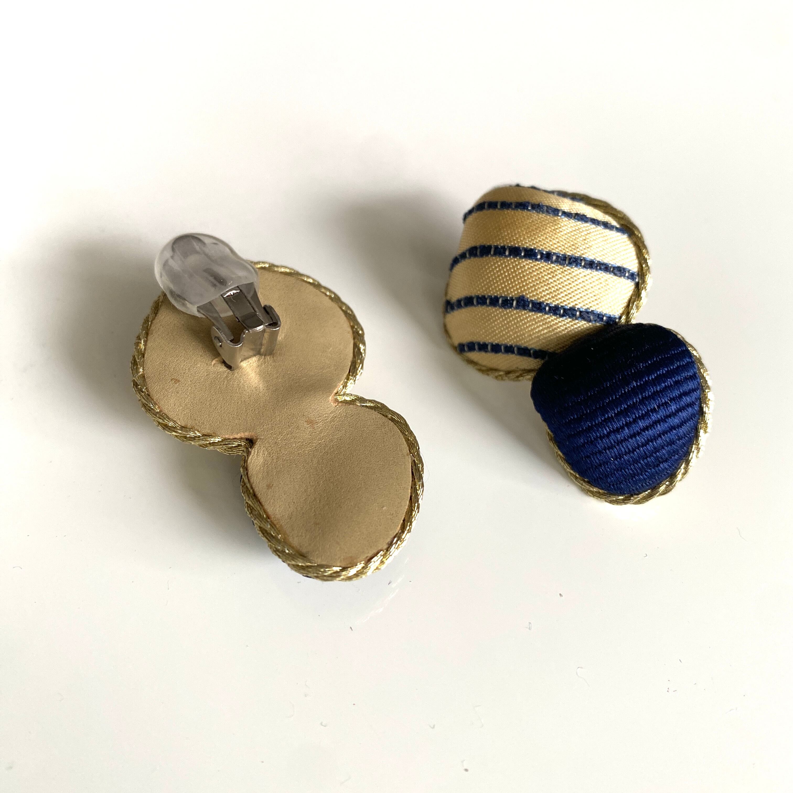"宍道湖産しじみの貝殻を、絹独特の光沢のある博多織の生地で包んだイヤリング。
