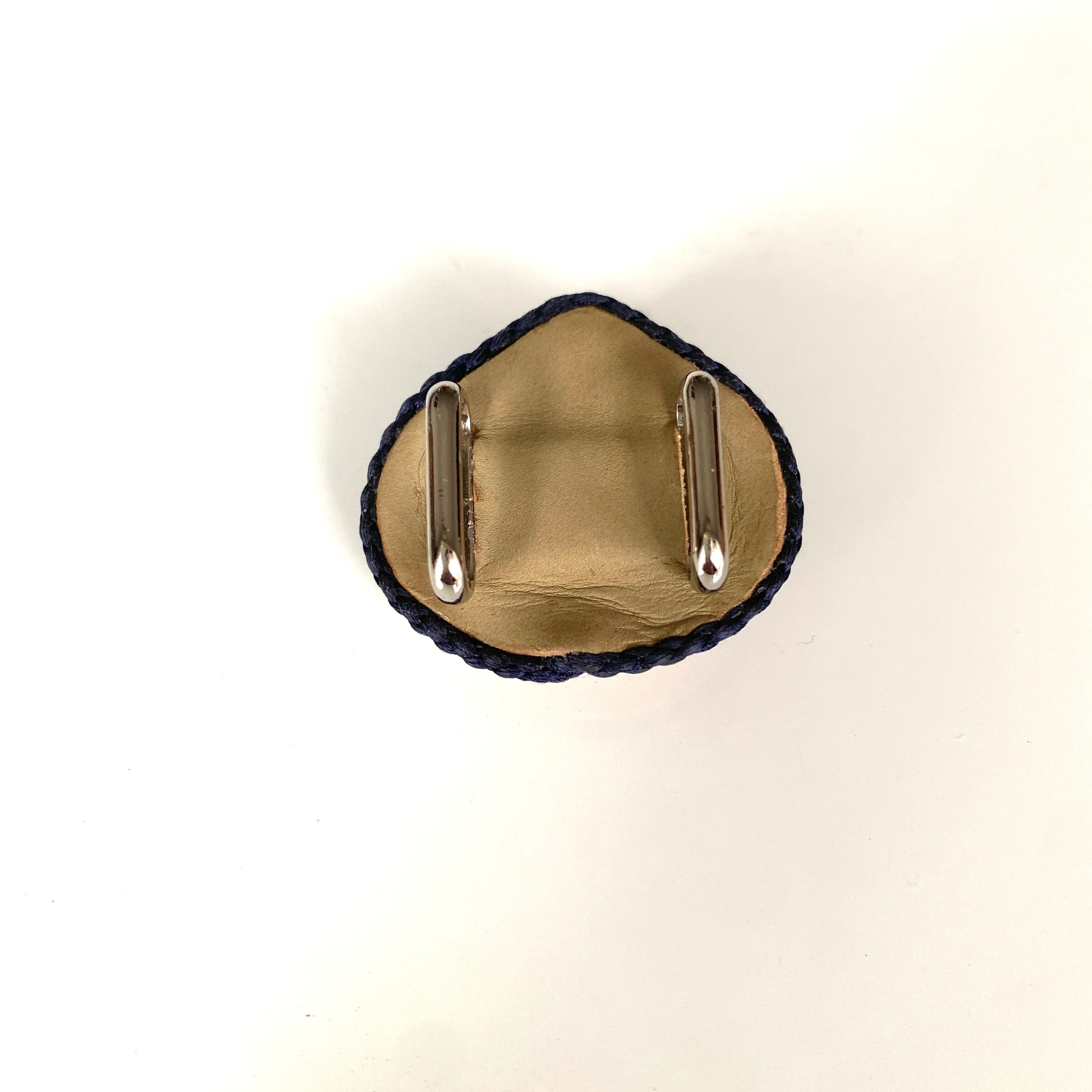 "希少な特大サイズの宍道湖産しじみの貝殻を、手仕事の温かみが魅力のインドカンタで包んだ帯留。