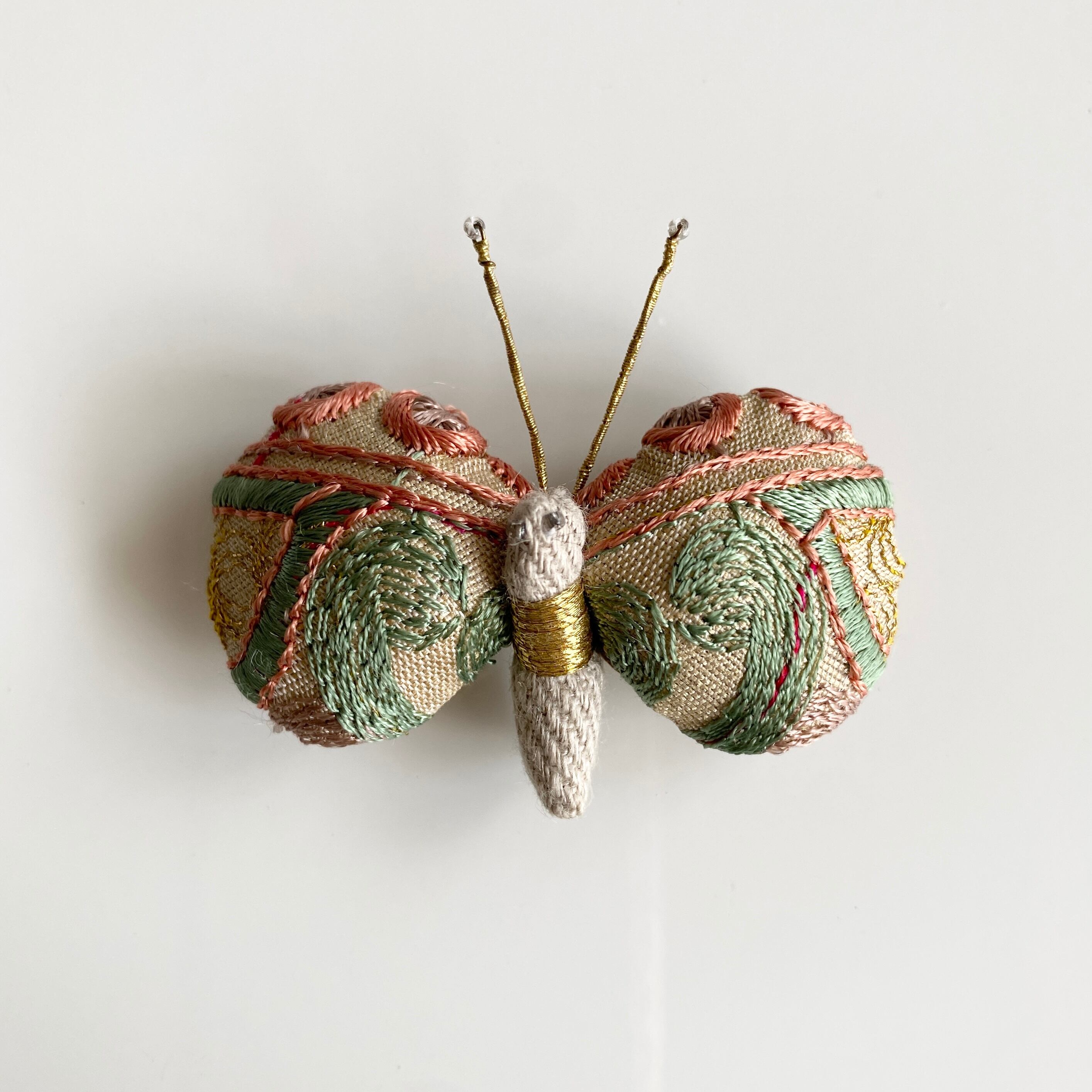 ビーズや金糸をあしらったボディや触覚が、どことなくユーモラスでチャーミングです。