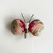 "大粒の宍道湖産しじみの貝殻を、華やかな刺繍が特徴的なインド刺繍リボンで包んだ、ちょうちょの帯留。
