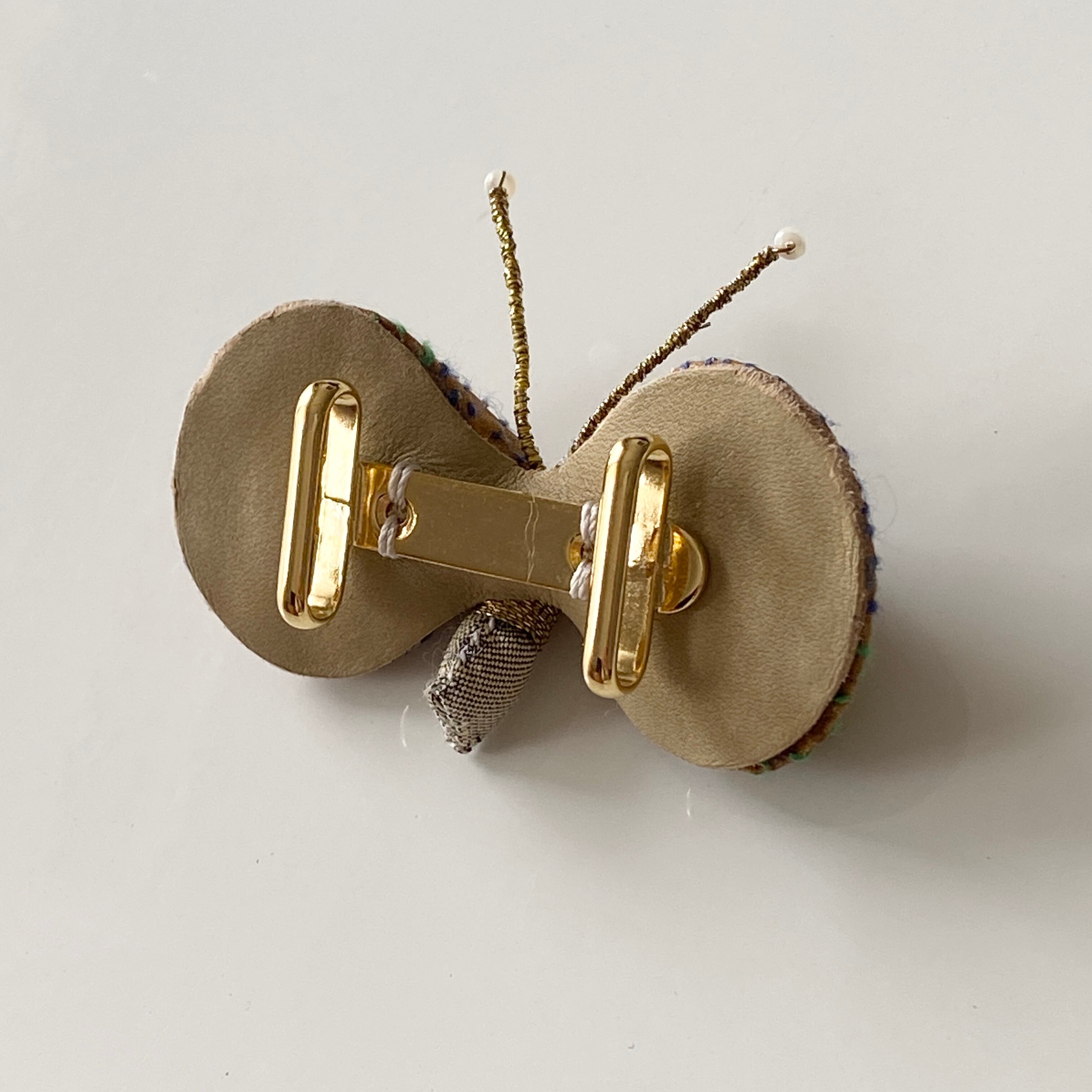 ビーズや金糸をあしらったボディや触覚が、どことなくユーモラスでチャーミングです。