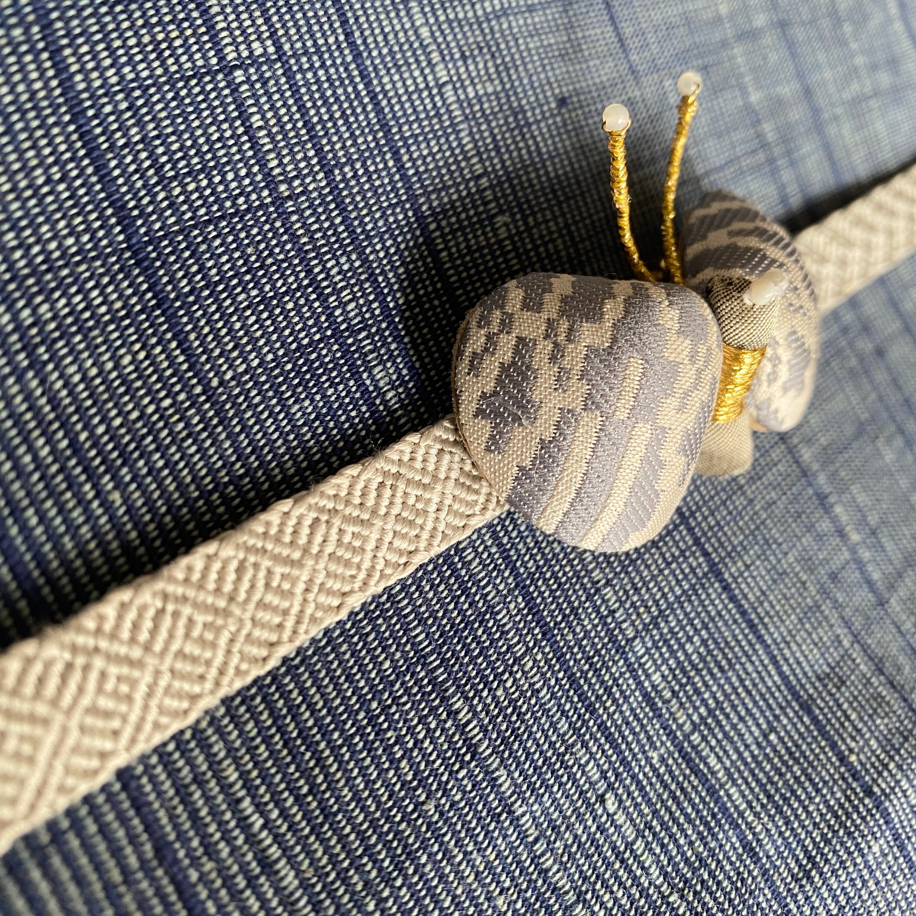 ビーズや金糸をあしらったボディや触覚が、どことなくユーモラスでチャーミングです。